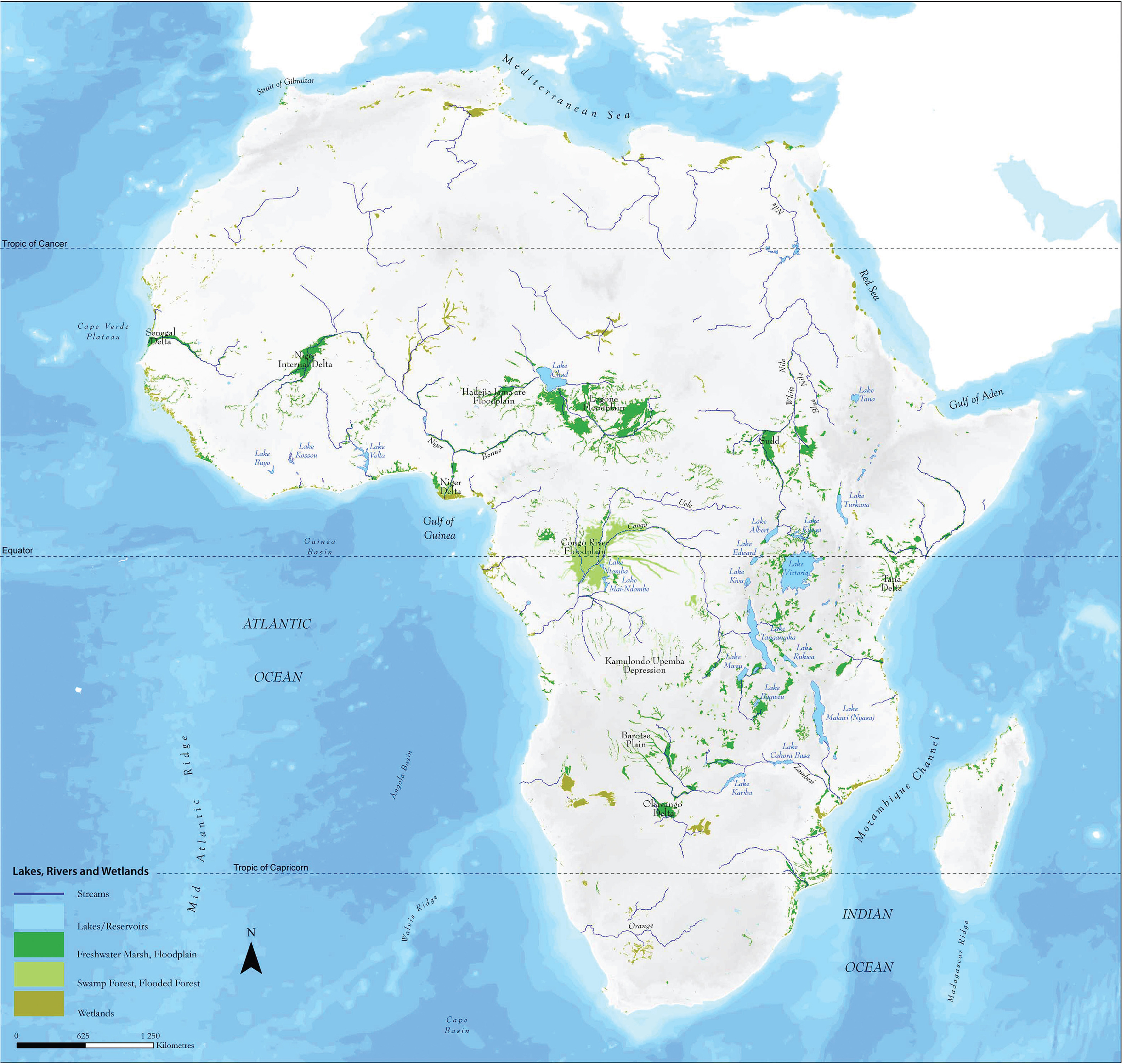 Africa is the second largest continent after Asia with a total area of 30.22 million km2 (including the adjacent islands). It has great rivers such as the River Nile, which is the longest in the world and flows a distance of 6650 km, and the River Congo, which is the deepest in the world, as well as the second largest in the world in terms of water availability. Yet, Africa also has vast stretches of arid, semiarid, and desert lands with little or no water. Further, Africa’s population is projected to increase by four times by the year 2100, reaching about four billion from the current population of little over one billion. Food insecurity and malnutrition are already highest in Africa (Heidhues et al., 2004) and the challenge of meeting the food security needs of the fastest-growing continent in the twenty-first century is daunting. So, many solutions are thought of to ensure food security in Africa. These ideas include such measures as increasing irrigation in a continent that currently has just about 2% of the global irrigated areas (Thenkabail et al., 2009a, 2010), improving crop productivity (kg m−2), and increasing water productivity (kg m−3). However, an overwhelming proportion of Africa’s agriculture now takes place on uplands that have poor soil fertility and water availability (Scholes, 1990). Thereby, the interest in developing sustainable agriculture in Africa’s lowland wetlands, considered by some as the “new frontier” in agriculture, has swiftly increased in recent years. The lowland wetland systems include the big wetland systems that are prominent and widely recognized (Figure 9.1) as well as the less prominent, but more widespread, inland valley (IV) wetlands (Figures 9.2 through 9.8) that are all along the first to highest order river systems. African wetlands (MAW, 2014). These are: “Areas of marsh, fen, peatland or water, whether natural or artificial, permanent or temporary, with water that is static or flowing…” (RAMSAR, 2004). But, these <italic>do not</italic> include inland valley wetlands. https://www.w3.org/1999/xlink" xlink:href="https://s3-euw1-ap-pe-df-pch-content-public-p.s3.eu-west-1.amazonaws.com/9780429089435/9c570d80-7548-4c77-8c7f-d7be50eaec81/content/fig9_1.jpg"/> Depiction of wetlands. https://www.w3.org/1999/xlink" xlink:href="https://s3-euw1-ap-pe-df-pch-content-public-p.s3.eu-west-1.amazonaws.com/9780429089435/9c570d80-7548-4c77-8c7f-d7be50eaec81/content/fig9_2.jpg"/> (From WARDA, Medium Term Plan 2007–2009, Charting the Future of Rice in Africa.Africa Rice Center (WARDA), Cotonou, Republic of Benin, 2006.)